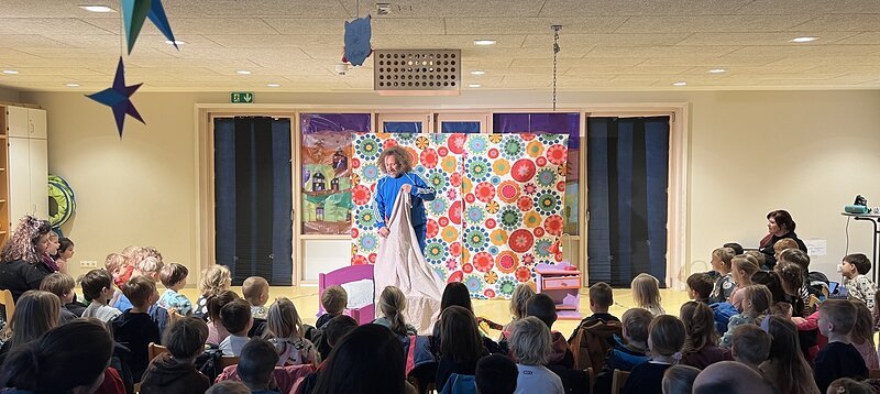 Unser Bürgermeister, Herr Walter Grob, hat sich um eine Theateraufführung bei Energie Schwaben beworben und den Zuschlag erhalten. Am Montag, den 09. Dezember 2024 gastierte das Theater EUKITEA mit Prävention & Internationalen Theaterprojekt "Warum ein Drachenschwanz noch keinen Sommer macht" für unsere Kindergartenkinder in unserer Einrichtung
